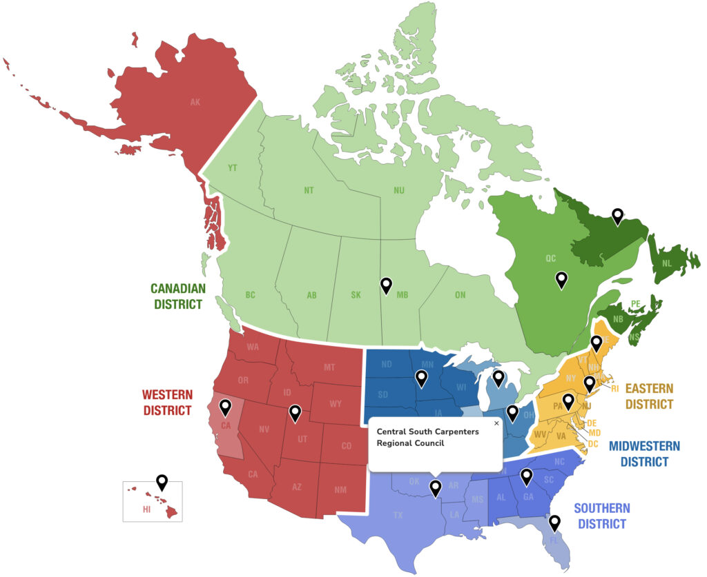 The Central South Carpenters Regional Council represents members in Arkansas, Louisiana, Mississippi, Oklahoma, and Texas.
